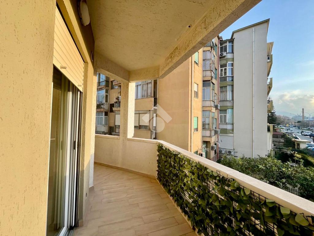 Via Salvatore Cappello, ad angolo con la Via Messina Marine, zona ricca di servizi quali supermercati, negozi, scuole e a due passi dalla linea tranviaria. L'appartamento è situato al 1° piano, all'interno di un contesto condominiale curato e tranquillo dotato di ascensore, gode di una tripla esposizione, caratteristica che garantisce luminosità e ventilazione naturale in tutti gli ambienti . L'immobile è composto da: una cucina soggiorno, una camere da letto, una cameretta, un bagno finestrato con doccia, una lavanderia e un ampio terrazzo che circonda l'intera abitazione. L'appartamento totalmente ristrutturato è dotato di infissi in pvc, tapparelle elettriche,riscaldamento autonomo e zanzariere, rappresentando la soluzione ideale per chi cerca una casa pronta per essere abitata.
